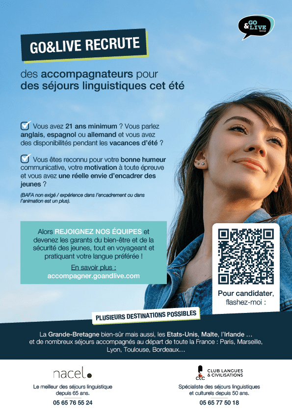 GO&LIVE recrute des accompagnateurs pour des séjours linguistique cet été