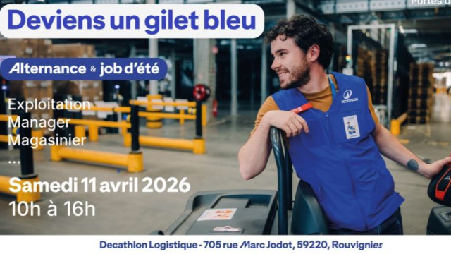 Le samedi 11 avril, le centre logistique de Decathlon Rouvignies t’ouvre ses portes pour l'événement "Deviens un gilet bleu". 👊🏻